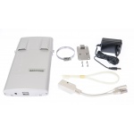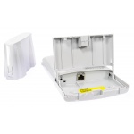 W zestawie znajdują się opaski do montażu na słupie i uchwyt do montażu na szynie (DIN). Oferowany produkt zasilany jest poprzez pasywne PoE 8 - 30 V, wraz z urządzeniem dołączany jest gigabitowy PoE injector oraz zasilacz 24 V, 0,8 A. NetBox posiada system RouterOS z licencją Level 4, może więc pracować w połączeniach punkt-punkt oraz w trybie punktu dostępowego.