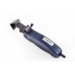 Ściągacz izolacji do kabli światłowodowych Pro'sKit 8PK-325. Narzędzie służące do zdejmowania izolacji wszystkich rodzajów kabli światłowodowych o przekroju od 4.5mm do 25mm w tym także do nacinania i zdejmowania izolacji odpornej na wilgoć. Ściągacz został wyposażony w regulowaną głębokość ostrza oraz regulowany przekrój z miarką o zakresie od 10mm do 25mm, którego regulację umożliwia pokrętło umieszczone w dolnej części korpusu w którym znajduje się także dźwignia pozwalająca na zmianę położenia ostrza o 90º.
