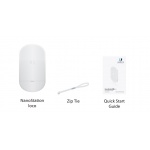 Urządzenie posiada jeden gigabitowy port Ethernet i zasilane może być tylko poprzez pasywne PoE 24 V DC. Maksymalny pobór mocy wynosi 8,5 W. W zestawie nie jest dołączony zasilacz! NanoStation AC Loco może być zamontowane na słupie, z urządzeniem dołączona jest plastikowa opaska zaciskowa.