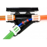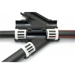 Trójnik przeznaczony do łączenia rur HDPE/RHDPE o średnicy zewnętrznej 32mm z rozgałęzieniem 45°. Złącze jest otwieralne, a nakrętki dociskowe dwudzielne przez co instalacja jest bardzo szybka i nie ma konieczności przecinania lub przeciągania kabli światłowodowych. Rozgałęzienie pod kątem 45° zapewni odpowiedni promień gięcia przewodów, a sam montaż trójnika na rurach odbywa się bez użycia dodatkowych narzędzi. Dodatkowo złącze może służyć jako urządzenie do łączenia mikrorurek prowadzonych w wiązkach (zdj. 6, 7) lub multirurach. Złącze odporne jest na promieniowanie UV oraz niskie i wysokie temperatury, może być stosowane na powierzchni, w gruncie lub w kanalizacji.