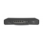 Router wyposażony jest we wbudowane anteny dookólne. Antena LTE cechuje się zyskiem energetycznym 4 dBi, a antena WiFi zyskiem 2,5 dBi. Urządzenie posiada 5 gigabitowych portów Ethernet oraz procesor IPQ-4019 dobrze znany z innych produktów MikroTika. Procesor ten oferuje 4 rdzenie, z których każdy ma taktowanie 716 MHz. Dodatkowym atutem jest port USB, do którego możesz np. podłączyć zewnętrzny dysk.